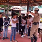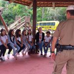 Alunos recebendo dicas e ouvindo algumas regras de trânsito