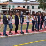 Alunos, professora e policial que participaram deste momento