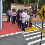 Alunos e professores recebendo instruções sobre a trânsitolândia