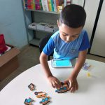 A professora mediadora Eloá Dantas na semana do trânsito trabalhou com o nosso aluno NEE atividades sobre o trânsito.