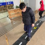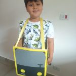 Para isso fizemos um circuito na área externa usando sacos plásticos para fazer as ruas, placas de trânsito ,carrinhos de brinquedo onde amarramos barbante para serem puxados e guiados pelos alunos .Também fizemos um ônibus com uma caixa de papelão onde os alunos puderam entrar dentro simulando que estariam dirigindo.