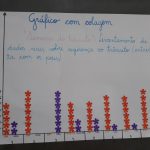 Desse modo, ao finalizarmos as questões, passamos à prática de montagem do gráfico. Decidi iniciar esse conteúdo utilizando material concreto para facilitar a correta organização que um gráfico exige.