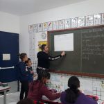 A aula iniciou com vídeos de campanhas para um trânsito seguro: “Agentes do trânsito, educação, segurança rodoviária para crianças”; “Cinto de Segurança”; “Conheça os direitos e deveres dos pedestres no trânsito”