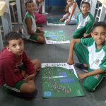 Na semana do trânsito foi realizada a contação da história em quadrinho do Zé Quest, Educação para o trânsito – Pedras no caminho. Em seguida os alunos participaram de uma roda de conversa sobre o trânsito e após brincaram com o jogo educativo personalizado sobre o trânsito e com os Paper Toys.