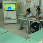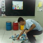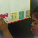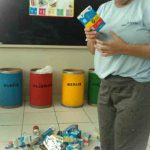 Logo realizaram a seleção dos materiais de acordo com as cores adequadas, enfatizando onde cada resíduo deve ser separado para serem levados para o reaproveitamento quando necessário.