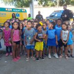 Os alunos puderam participar de várias demonstrações importantes para a sua segurança e de seus responsáveis quando estiveram em transitando pelas estradas.