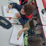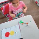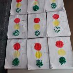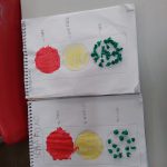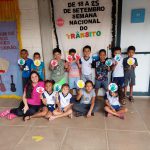 Na aula de Arte a turma do segundo período confeccionou o semáforo, memorizando de forma lúdica as cores e o que elas representam. Fizeram também plaquinhas de trânsito carimbando as mãozinhas.