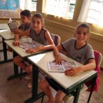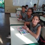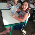 Atividade: As crianças fizeram as atividades propostas na revistinha e aprenderam sobre: ser um bom pedestre; cuidados ao passar em frente de uma garagem; não atravessar a rua olhando para o celular; como se portar no ônibus e como desembarcar; cuidados para pegar bola na rua; embarcar e desembarcar pelo lado da calçada; não jogar nenhum objeto pela janela do carro; crianças até 10 anos no banco traseiro; não se dependurar no caminho e mais outros assuntos.