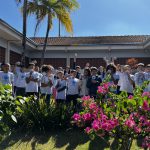 Realizaram a pintura de um desenho e também receberam sementes de girassol para plantarem em suas casas.