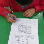 Os alunos do terceiro ano da escola E.M.E.F Professor Carlos Alberto Vigneron do município de Jacupiranga realizaram uma atividade de matemática. Nessa atividade os alunos tinham que observar três placas e escrever em baixo o sentido de cada uma delas. No exercício dois os alunos tinham que observar as placas e escrever o nome da forma geométrica plana que representa cada placa. No exercício três tinham que observar a imagem e completar as frases escrevendo direita ou esquerda de acordo com as instruções. Dois alunos meus realizaram essa atividade presencial e os demais realizaram em sua casa.