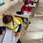 No dia de hoje a professora Ana trabalhou com seus alunos do Pré II A, turno matutino, o tema separação de lixo.
