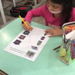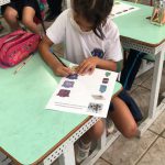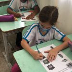 Os alunos do 1° ano do fundamental aprenderam com essa atividade a separar o lixo reciclável corretamente, identificando as lixeiras por seus nomes e cores.