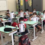 Na prática também separaram os lixos nas lixeiras recicláveis presentes no ambiente escolar.