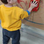 Iniciamos a atividade com uma rodinha da conversa sobre a importância de ser “legal” no trânsito, seja como motorista,seja como pedestres. Depois fiz a leitura do livro ” A menina que parou o trânsito” de Fabrício Valério, então fomos para uma atividade onde eles passeavam com o carro sobre a estrada e a tinta fazia com que as marcas do carrinho ficassem sobre a estradinha.