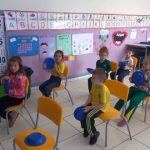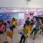 De forma ludica, a professora simulou o ambiente do ônibus com a musica “A roda do Onibus roda roda” onde as crianças utilizaram um prato para representar o volante, buzina e outras partes do transporte. Além disso a professora trabalhou com pesquisas já que uma parte da turma vem com o transporte escolar e outra parte vem de carro com os pais.