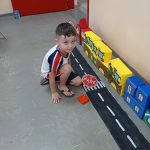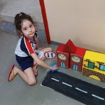 Nessa atividade, as crianças aprenderam os sinais de trânsito. Foram mostrados para as crianças os sinais e os seus significados, alguns sinais a crianças já conheciam. Depois da explicação e conversa sobre o assunto, as crianças brincaram com os sinais de trânsito. Utilizando a maquete, eles colocavam os sinais nos lugares corretos.