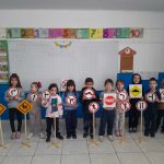A professora Julie trabalhou com os alunos do pré II A o conteúdo Sinalização de Trânsito. Primeiramente explorou dos alunos quais sinalizações que eles conheciam e em seguida levou até a sala de aula várias placas de sinalização, onde os estudantes puderam manipular e explorar as placas, falando o seu significado. Foi uma atividade muito proveitosa onde eles tiveram a oportunidade de explorar e conhecer de perto cada placa de sinalização.
