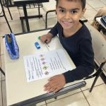 Como atividade prática foi realizada uma atividade em folha para pintar e escrever o significado de cada cor. E assinalar nos quadrinhos as atitudes corretas no trânsito.