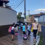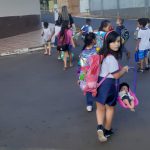 Os alunos do primeiro ano “E” acompanhados pela professora fizeram uma caminhada nos arredores da escola, até uma praça próxima.