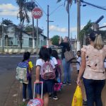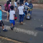 Caminhada nos arredores da escola para os alunos observarem a sinalização de transito e compreender seus significados.