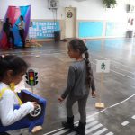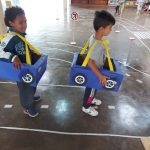 No dia 8 de agosto foi realizado um circuito com os alunos do nível II no pátio da escola. Foi montada uma suposta pista com placas, faixa de pedestre e veículos feito com papelão. Os alunos vestiam os carrinhos e seguiam na pista respeitando as regras de sinalização sobre orientação da professora. Foi um dia de aprendizagem, conscientização e de muita diversão.