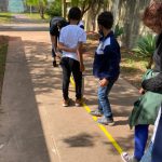 A Escola Municipal Professora Cândida Junqueira – CAIC- possui uma movimentação intensa de alunos, professores, funcionários e pais diariamente. E muitas vezes esse fluxo intenso de pessoas no ambiente escolar gera tumulto. O referido assunto foi discutido em sala de aula e concluiu-se que seria necessário demarcar o piso para informar, organizar e orientar a circulação dessas pessoas. Alunos e professores foram divididos em grupo e cada um ficou responsável pela demarcação, com faixas adesivas, de um determinado ponto na escola. O respeito a essa sinalização garantirá uma circulação mais organizada e segura para todos na escola.