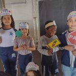 Os alunos também fizeram viseiras para ilustrar esse momento de maneira lúdica e levar essa discussão aos pais e a comunidade.