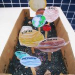Esta atividade foi realizada com os 18 alunos do 5º ano, onde após abordar o tema sistema solar, a professora propôs aos alunos que eles confeccionassem uma maquete do sistema solar, utilizando materiais recicláveis, a fim de compreenderem o cuidado com o meio ambiente, através do reaproveitamento de materiais.