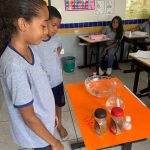 Nesta aula o professor iniciou sua aula com uma conversa informal com os alunos sobre o Dia Mundial da Água, conscientizando-os acerca da necessidade de não desperdiçar água, pois esse é recurso indispensável na vida das pessoas e no equilíbrio dos ecossistemas. Em seguida, os alunos aprenderam na prática sobre solubilidade e densidade da água.