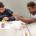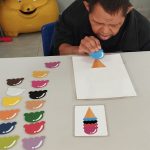 A professora de forma lúdica trabalhou as cores e formas, além de desenvolver o raciocínio, oralidade, percepção visual, dentre outras habilidades que devemos ter no trânsito seja como condutor ou pedestre.