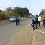 De dois em dois, sob a supervisão das professoras e funcionários da escola, os alunos atravessaram a rua em frente a escola.O local não tem faixa de pedestre e com essa imagem e aula, foi mandado para o Prefeito da cidade para disponibilizar a faixa de pedestre. Foi proposital a foto para que através dessa aula causar sentimento e termos à faixa de pedestre.