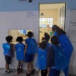 Nesta atividade, conversamos sobre a importância da água e os impactos do desperdício. As crianças se transformaram em Protetores da Água, explorando a escola em busca de possíveis desperdícios e refletindo sobre como podemos cuidar melhor desse recurso tão valioso. A musicalização esteve presente com a canção Água, tornando o aprendizado ainda mais envolvente e divertido. Utilizamos o livro Planeta Azul também.