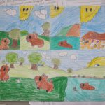 Os alunos do 5º ano A realizaram uma produção de texto e história em quadrinhos sobre as capivaras e seu habitat natural.