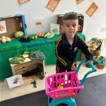 Com o objetivo de envolver os alunos em um tema de Meio Ambiente de forma sensorial e divertida, realizamos uma atividade de jogo simbólico com a temática de “Sacolão”.
