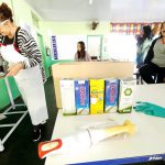 Os alunos observaram atentamente ao aprendizado recebido e se encantaram com as etapas do fácil e rápido procedimento da fabricação de sabão!
