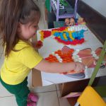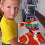 Para essa atividade os alunos recolheram as tampinhas em suas casas, e depois na escola colaram no peixe.
