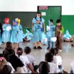 Logo após, história foi transformada em uma linda peça de teatro, onde os alunos fizeram a apresentação no pátio da escola para todos os alunos.