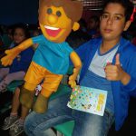 Todos ficaram apaixonados pelos personagens da turma do Zé Quest. Manusearam, abraçaram e brincaram muito com os bonecos da turminha.