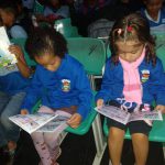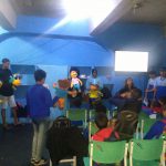 Foi distribuída a revistinha do Zé Quest para cada aluno que não pararam de folhear, encantados com o colorido e com a história.