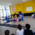 A turma do 2 Ano “A” da Escola Municipal Rui Valdir Pereira Kern – Quatro Barras/ PR realizou no mês de agosto uma apresentação de Teatro com o tema !Todos contra a distração”, os alunos com idades entre 7 e 8 anos ensaiaram situações que ocorrem no dia a dia em um trânsito e os perigos decorrentes a distração, como, o uso do celular, velocidade, distração dos pedestres, desobediência das placas e faixas de pedestres e até uma simulação de um acidente !