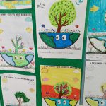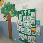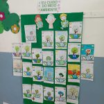 Após explorar várias reflexões sobre o assunto, foi proposto a construção coletiva de um painel com o tema – Eu cuido do Meio Ambiente, onde cada criança fez um desenho e uma frase sobre o planeta que ela quer, depois foi colado no painel coletivo e exposto na sala.