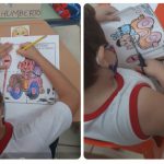 Desenvolvimento: Com a folhinha da atividade em mãos conversamos e fizemos uma reflexão e uma leitura de imagens aonde as crianças falaram sobre já ter visto a placa que estava naquela atividade  e outras mais também no trânsito dia-a-dia e assim eles demonstraram e compartilharam  o entendimento deles em relação ao que eles estavam vendo; Feito este primeiro momento explicamos  que aquela imagem era um “quebra-cabeça” e que então eles deveriam pinta-lo e recorta-lo no tracejado fazendo com que o quebra-cabeça ficasse com 4 partes  e fosse montado em outra folha mais grossa para que pudessem brincar mais vezes.