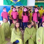 A turma do 4º ano B após a leitura da história em quadrinho: Pense, Repense, Aja Reaja trabalhou a letra da música Tempo de ser feliz. Em uma roda de conversa debateram sobre as ameaças a biodiversidade. Queimadas, desmatamento, poluição, espécies em extinção, em seguida realizaram desenho sobre a música e fizeram a encenação.