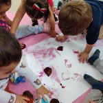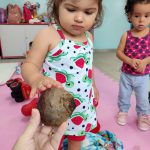 Exploramos alguns tópicos sobre a importância de uma alimentação saudável e pudemos falar sobre alguns vegetais cujo o consumo contribui positivamente para a nossa saúde. Apresentei uma beterraba para a exploração sensorial e visual, posteriormente, propus uma atividade onde puderam traçar marcas gráficas e pintar usando a própria beterraba, eles puderam observar a textura, o cheiro e a cor, justamente naquele dia, também foi oferecido uma saladinha de beterraba na refeição do almoço, então puderam perceber que nosso recurso da aula, também se transformou num alimento saboroso.