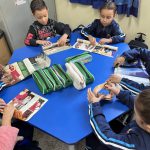 Cada criança pegara uma folha de revista e enrolar e formar um círculo, unindo as duas pontas.