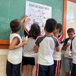 A atividade foi desenvolvida em sala com as turmas dos segundo anos A e B, em culminância do projeto de combate, conscientização à transmissão da Dengue e consequentemente ao mosquito Aedes aegypti. Foi trabalhado anteriormente: O que é?, forma de transmissão, proliferação, como evitar, como se proteger contra a dengue.
