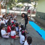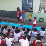 Durante a roda da conversa, os alunos puderam refletir sobre como podemos ajudar a acabar com o mosquito. Falamos sobre os locais que acumulam água e como agir para que isso não aconteça. Em seguida, recebemos a equipe do meio ambiente da nossa cidade que por meio de um teatro mostraram aos alunos o que devemos fazer para acabar com o mosquito. Eles abordaram o descarte incorreto do lixo, reciclagem um dos meios para acabar com o excesso de lixo e criadouros do mosquito tudo de forma simples e divertida. De volta a sala de aula confeccionaram a viseira e levaram para casa a proposta de que se cada um fizer sua parte podemos juntos acabar com a dengue.