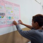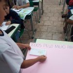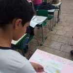 Os alunos apontaram várias formas em seu dia a dia, em que eles podem contribuir para não poluir o Meio Ambiente na escola, em casa e na rua. Após o debate, os estudantes escreveram frases com orientações de como preservar o Meio Ambiente. As frases formaram um cartaz de conscientização.