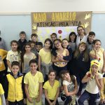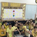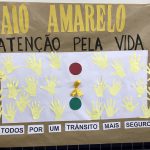 Fizeram um semáforo, onde a cor amarela ficou com um laço, símbolo do Maio Amarelo, mostrando a importância da Atenção no trânsito.