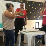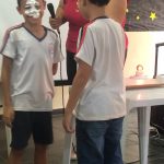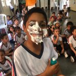 As professoras fizeram uma dinâmica de torta na cara com os alunos, com perguntas e respostas usando os conhecimentos já trabalhados em sala até a presente data.